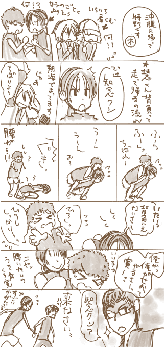 沖縄に戻って特訓です→田仁志くんをかついで走ります→熱海で待ってますの流れ。